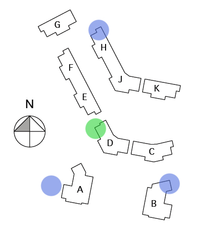 Dessa slängs i föreningens soprum som finns i Hus A, B och H (blått på kartskissen). Varje soprum har kompostkärl och i dessa ska hushållsavfallen slängas i de papperspåsar som finns att hämta i soprummen.